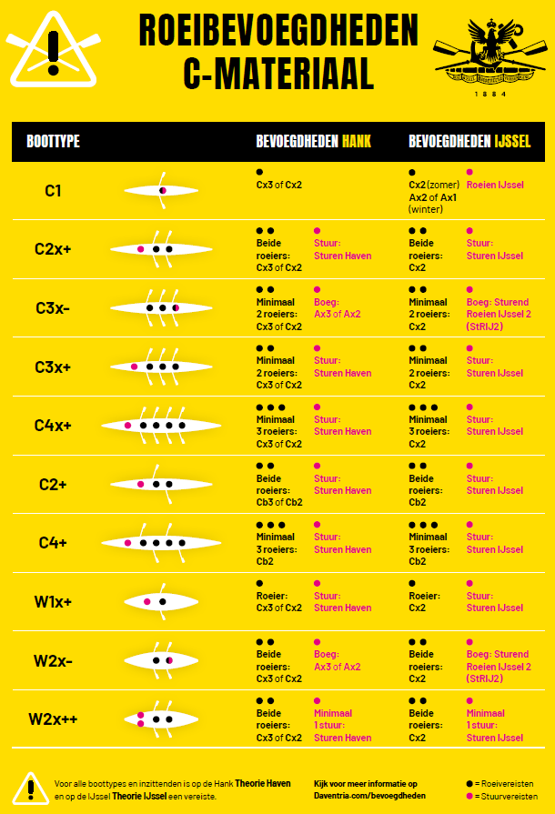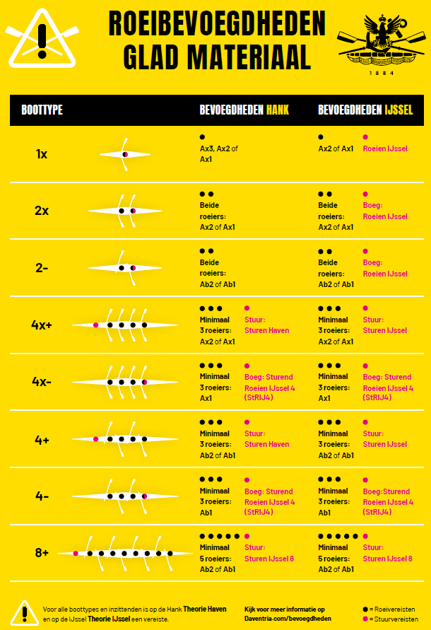 Op onze website en in de loods worden nieuwe A3-posters “opgehangen” die in een oogopslag weergeven wat de benodigde bevoegdheden per boottype zijn om uit te varen op Hank en IJssel.